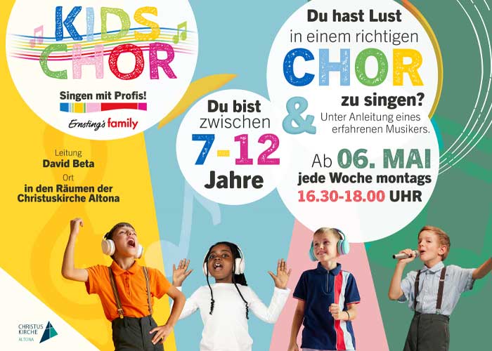 Der Chor findet einmal die Woche montags von 16:30 – 18:00 Uhr in den Räumen der Christuskirche Altona statt. Nach zehn Wochen endet das Projekt mit einem kleinen Abschlusskonzert. Hier zeigen die Kindern Ihren Familien und Freunden die gemeinsam gelernten Songs.